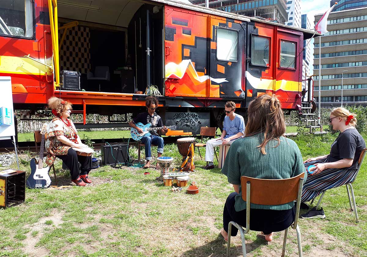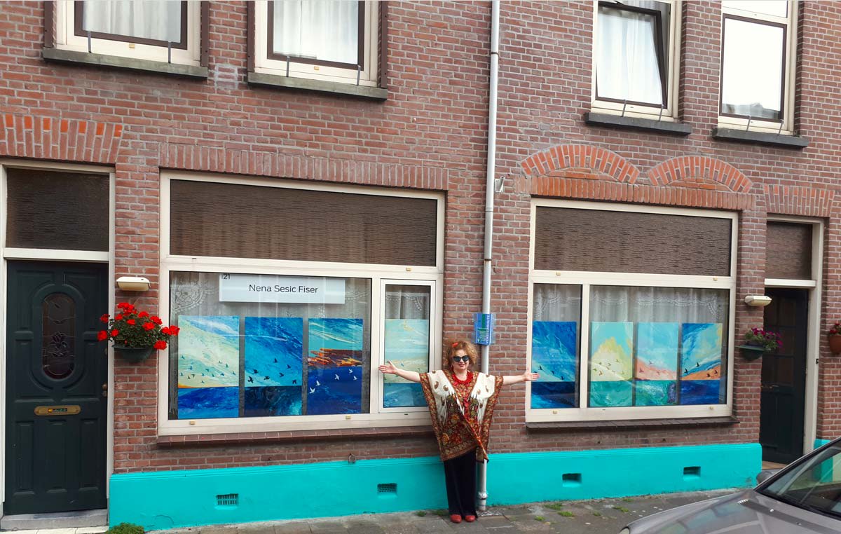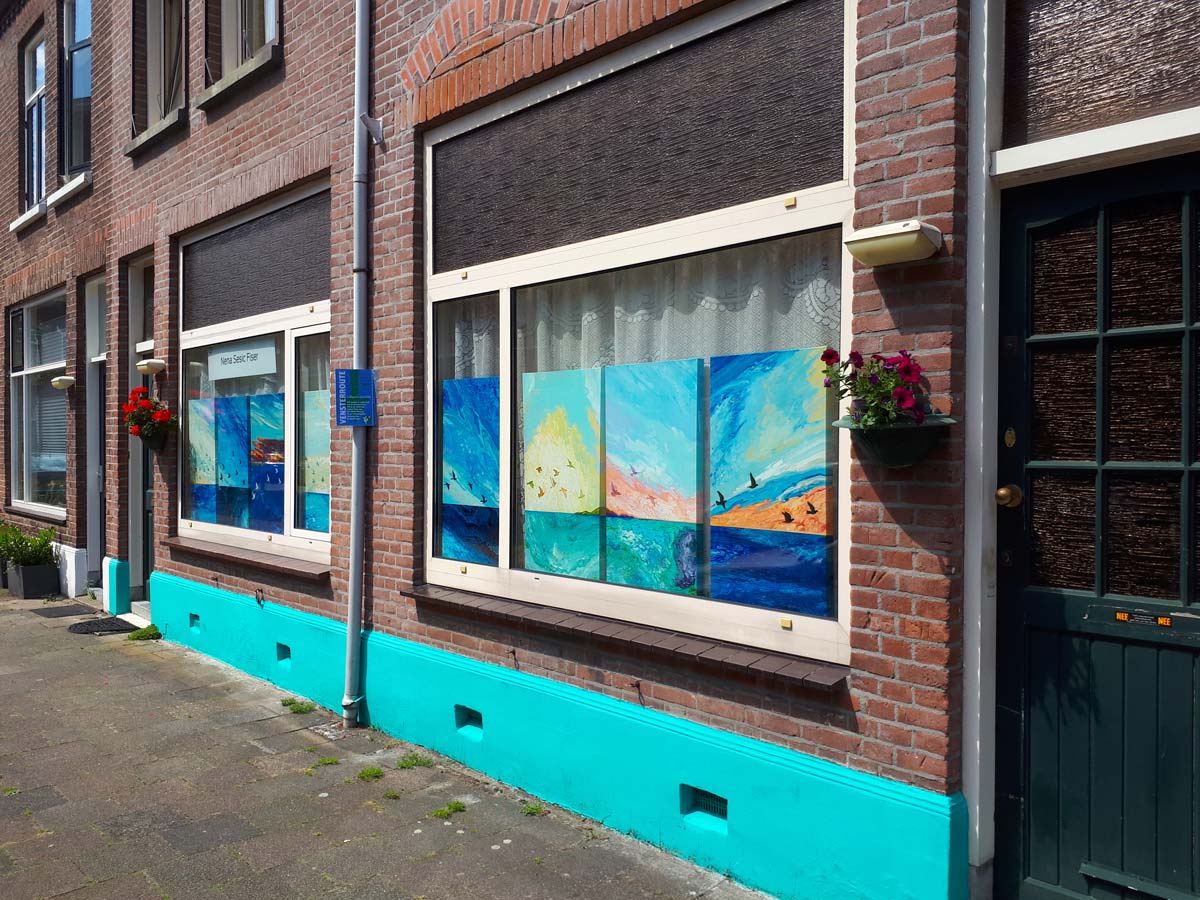 During the lockdown, due to COVID-19 outbreak, when all art galleries were closed, the association “Het Wilde Westen” from Cereolfabriek in Utrecht invited several artists to take part in a project that would nevertheless make art accessible to the public. The idea was that on the given weekend the participating artists expose their works in their windows or perform in front of their houses. Enjoying beautiful summer weather, passers-by would stroll by paintings hung in the windows, listen to the music, to poets reading their verses, or enjoy a dance performed on the street pavement or in a nearby park.